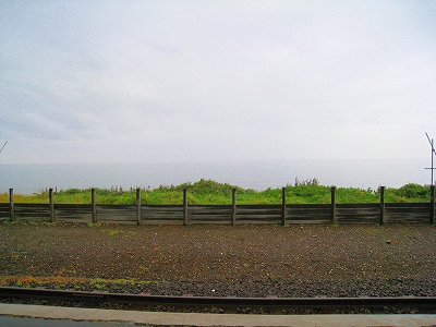 その日には素晴らしい観望のところで、私ならまた気取って、汽車、望海の木造舎にいつしか到着せり、なんてやりはじめていたのかもしれない。しかし陸地はいい道が横切り、人家もあり、コンビニまであって世俗の世界だった。