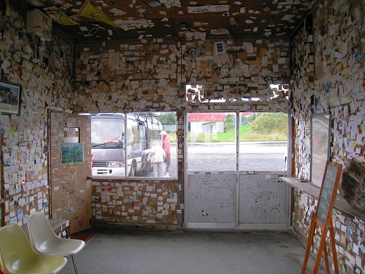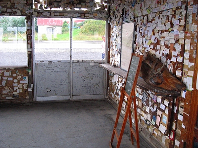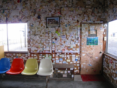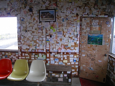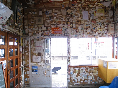 有名な駅らしく、降りるときに雰囲気が違うのがわかった。そして駅舎内には哀愁に満ちたことに、夥しい数の名刺や切符が貼られている。なぜに我々はこんなふうにものを残そうとするのであろう? 何のためらいもなく、自身のフルネームを残した人は、それを指摘されても、そうだ、おれは北浜まで行ったんだ、と自慢げに語り、北海道は北浜がどれほど大地的でオホーツク的で、人の虚しさを感じたかを炉端で語るのやも知れぬ。そして近頃は遠出していないことに自身の生活感を見つけて、若いときは…と甘い回想を綯い交ぜにするかもしれない。