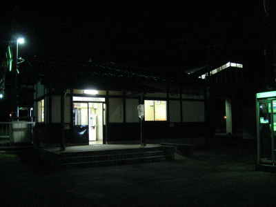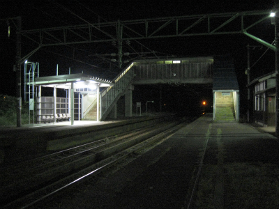 決まった後、暗がりの中、島ホームの待合室の取れ壊されて ならされた砂利敷きなどをで踏みならしくるくる回る。もう夜はかなり肌寒くなっていて、蛍光灯照らす新しくされたパネル風よけ開放式の待合は妙に冷たく肌に刺さった。それから跨線橋を渡って、駅舎の方に戻り、駅前をもういちどぶらついた。国道が走っているくせに、何の頼りにもならないということに虚脱する。