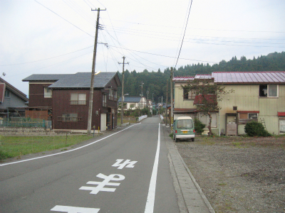 集落への道。
