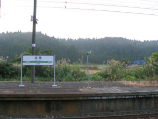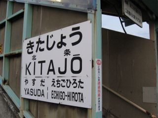 新潟に入ってそういやプラットホームが固く広くまっすぐ長いことが多いなと思う。そういう矩形塊が山間部や平野部にどんと張り伸ばしてる駅のうちの一つでもある。読ませ方の違うきたじょうと書かれた駅名標に、朝まだきの冷たい風の中、異郷に来た感じが得られた。きたの響きがありがたくて納得しているんだから、単純だ。