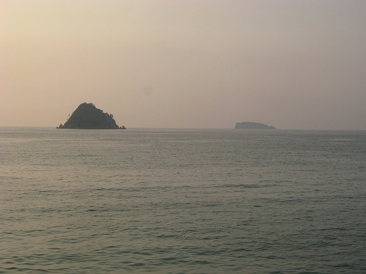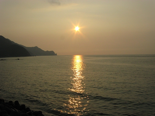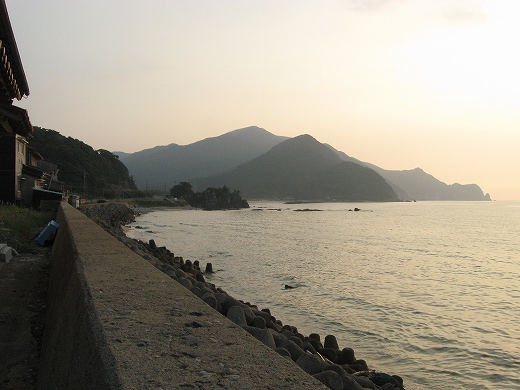 私はシーサイドまで夕日を見に行った。静かな国道沿いの集落で、屹立せる山が迫っている。煙草屋が自販機に休みの張り紙を出している。