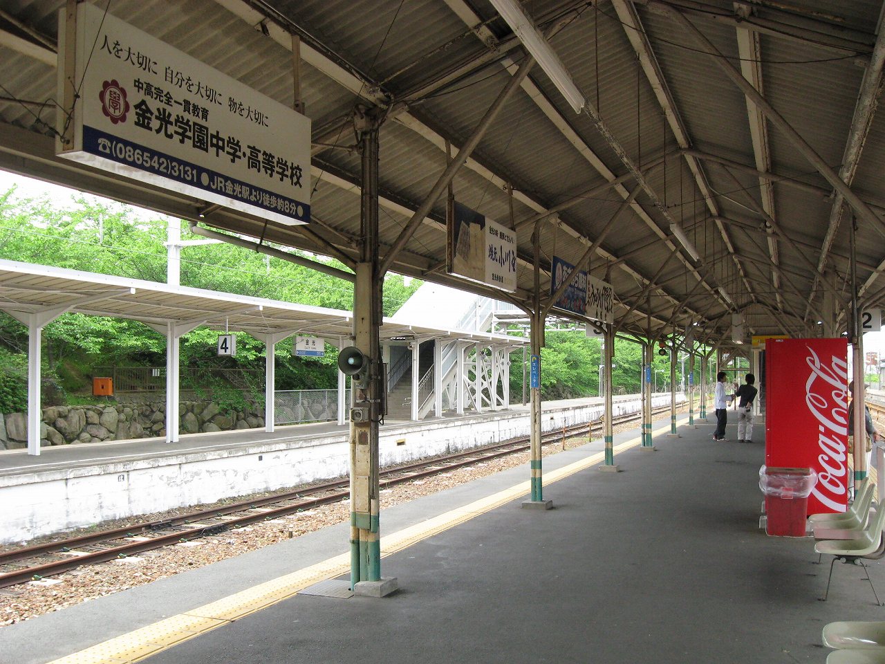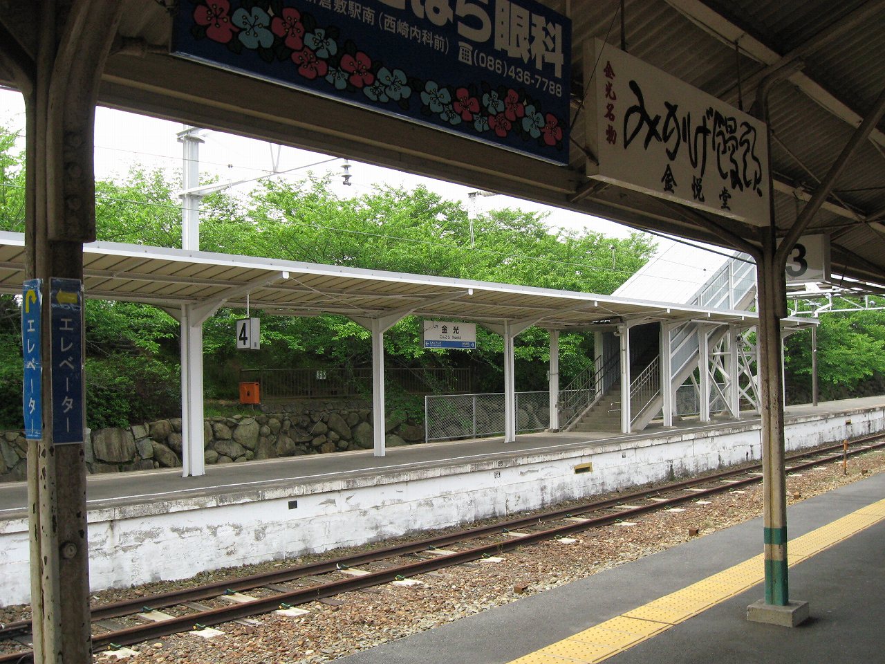 倉敷、新倉敷などの人多げな駅をやり過ごして、金光という駅に僕は向かった。すでに車内は午前十時の眠たさをたたえ、何度も渡河し、もはやどこだかわからなくなった。岡山は山陽道のまっただなかを旅してる、そんな感じだった。やがて車内にはコンコー、コンコーです、と無表情な女声の放送が流れ、何もかもがそのままに流れていくような初夏の午睡だった。