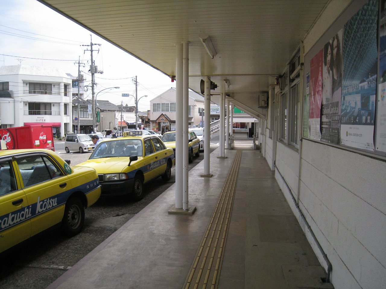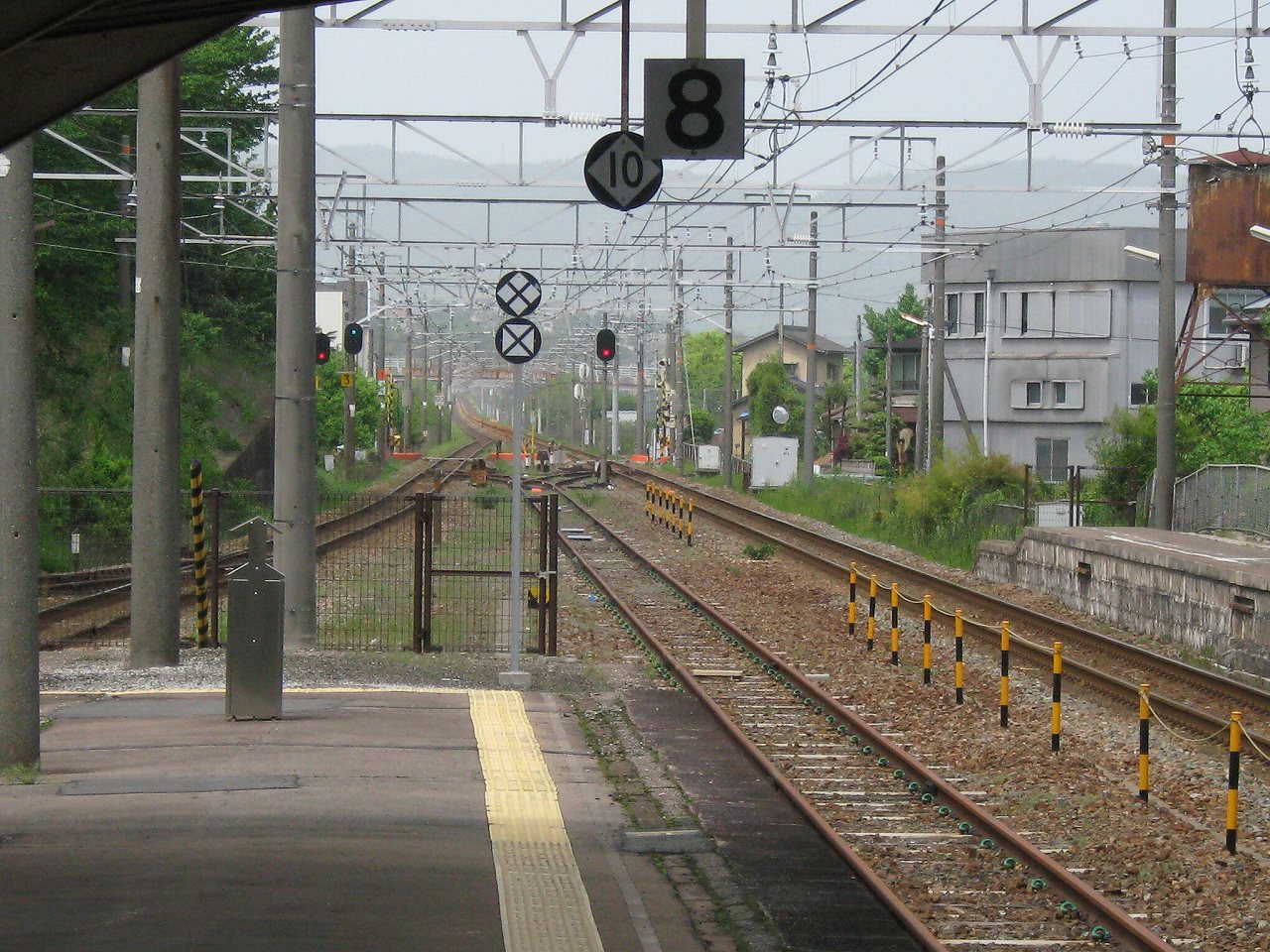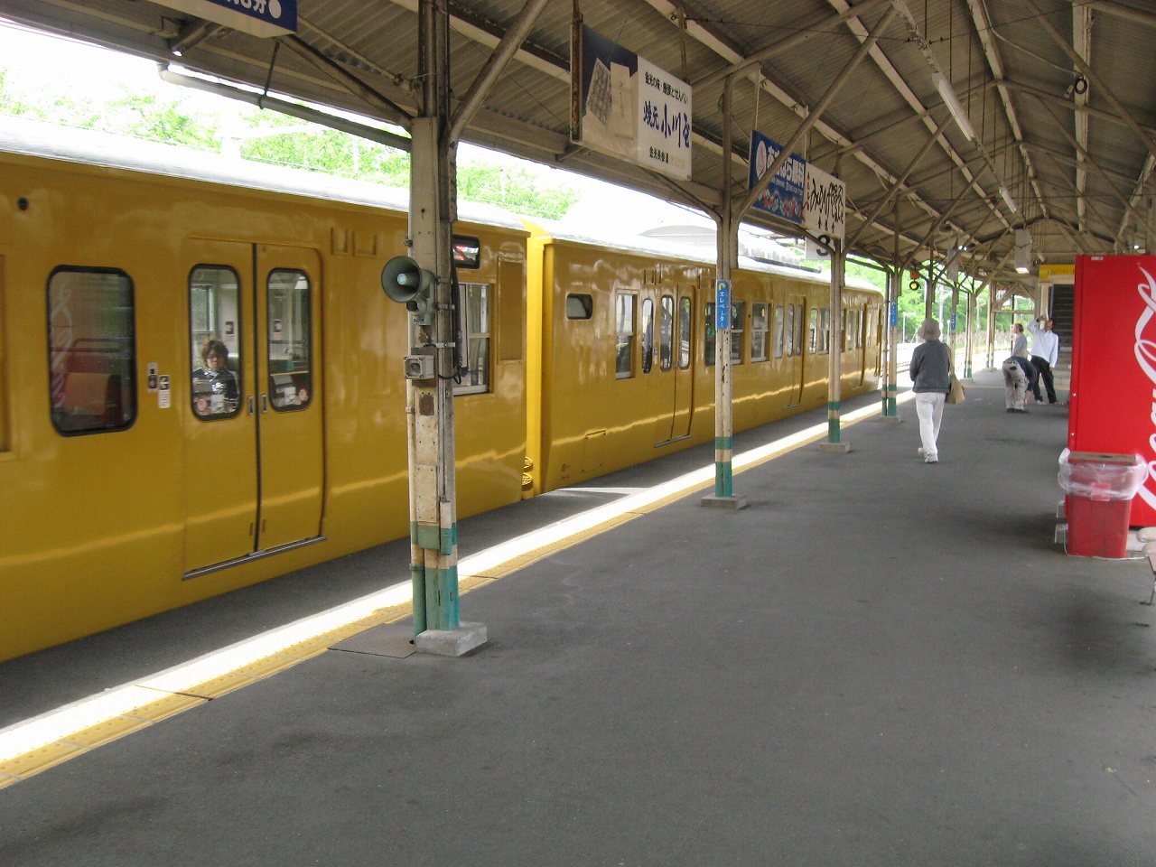高い屋根のホームに放り出される。降りた何人かの中年女性客すべては、そのまま階段へと向かう。僕は列車や人をやり過ごしていると、4番線に沿った若葉の街路樹の香りが漂ってきた。郷土食の濃い行燈看板が、屋根からぶら下がっている。