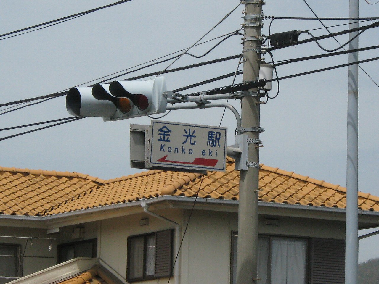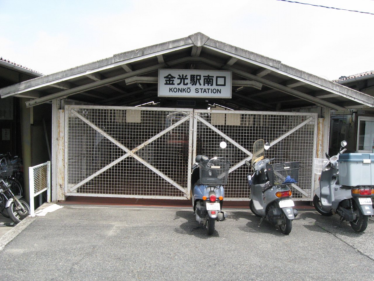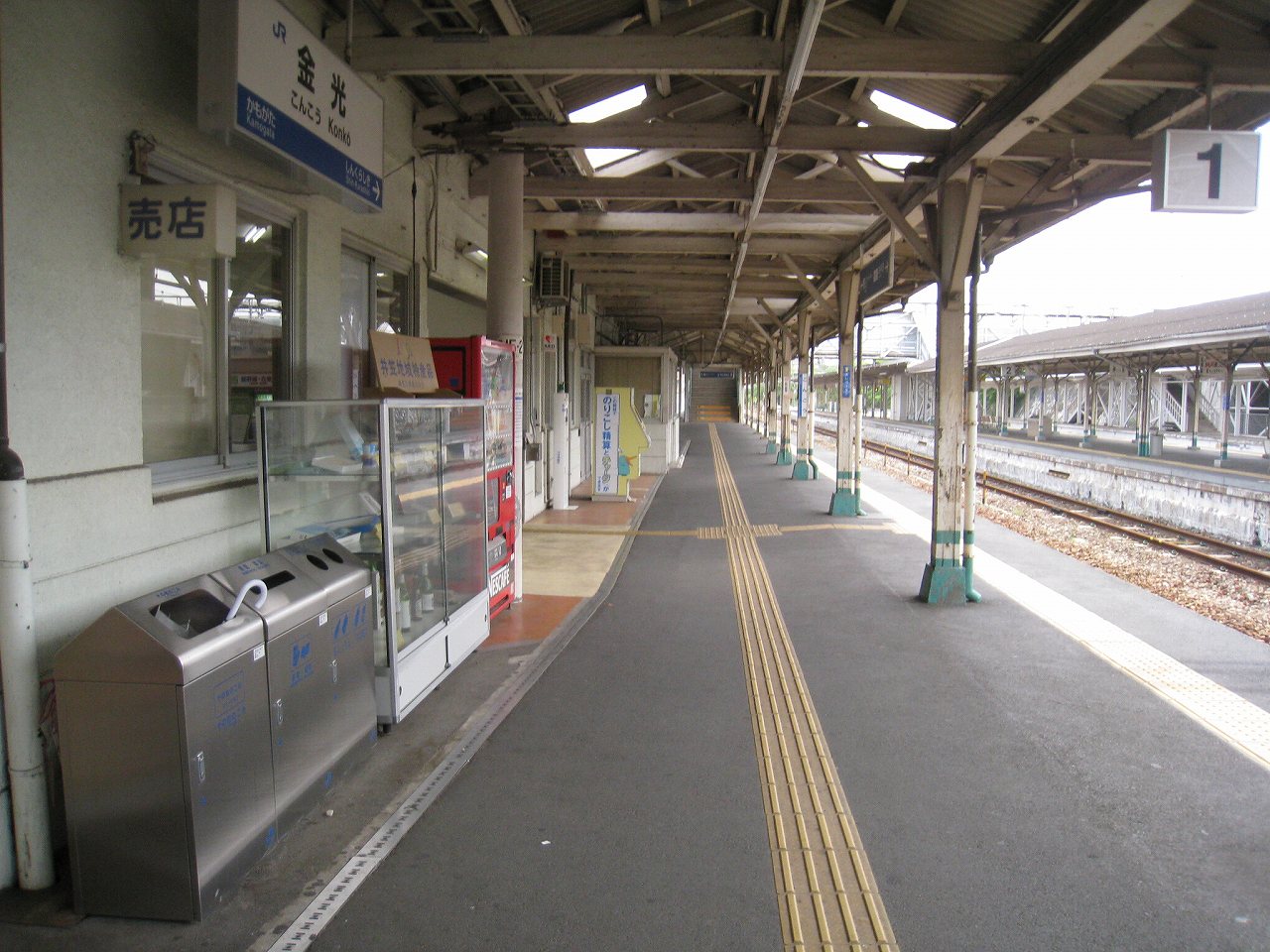 遠くで金光の駅名標が屋根の下に提がっている。また一つ、金光という見知らぬ街に来た、そう思った。