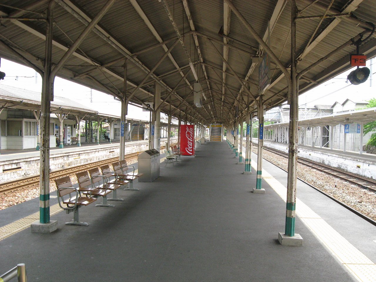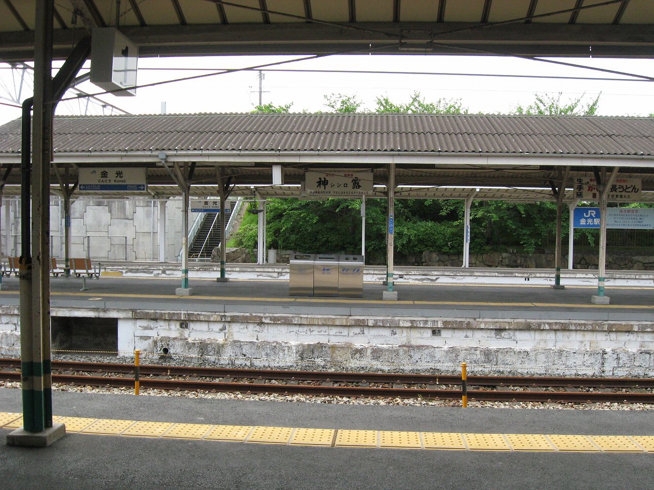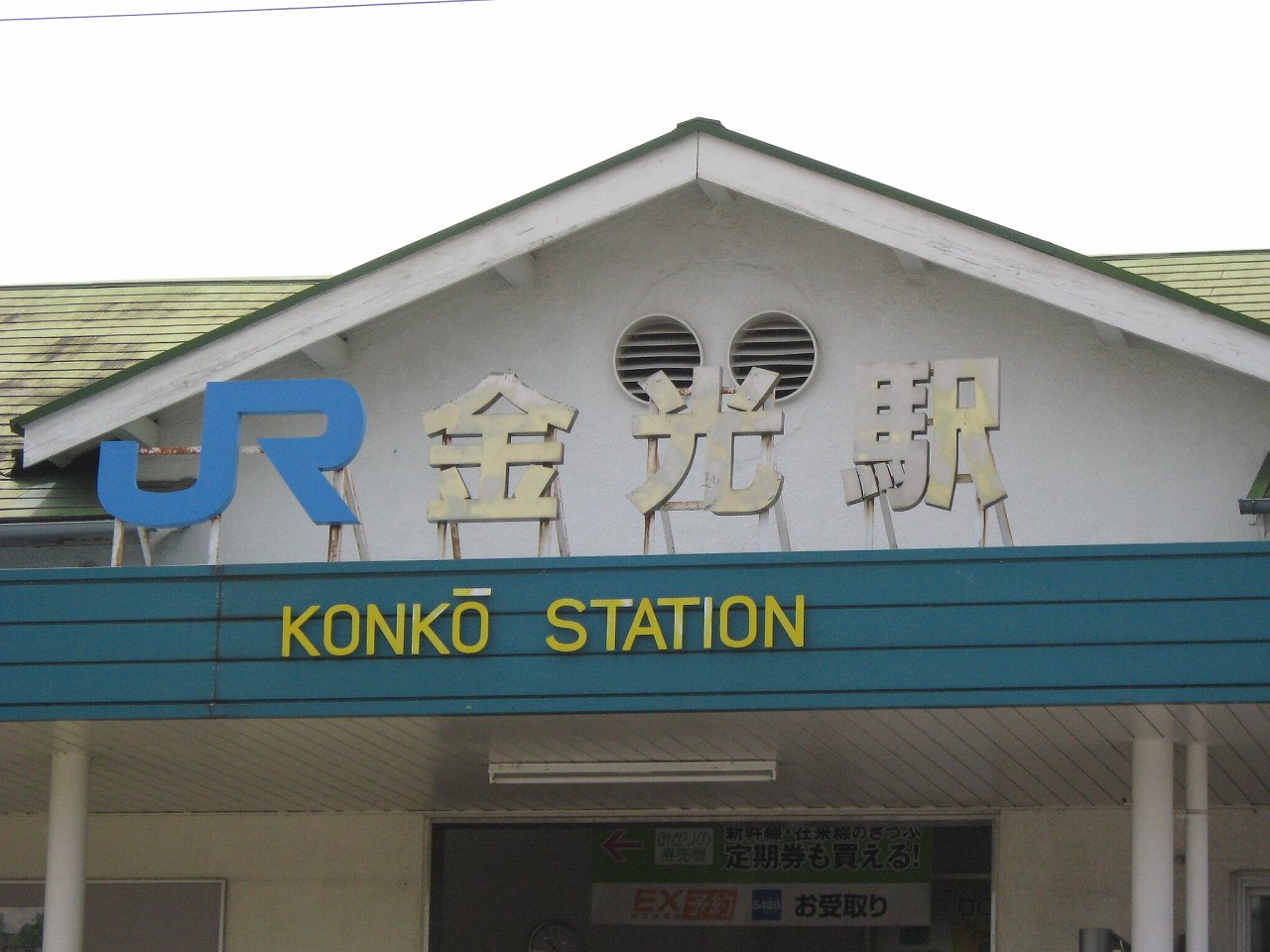 遠くで金光の駅名標が屋根の下に提がっている。また一つ、金光という見知らぬ街に来た、そう思った。