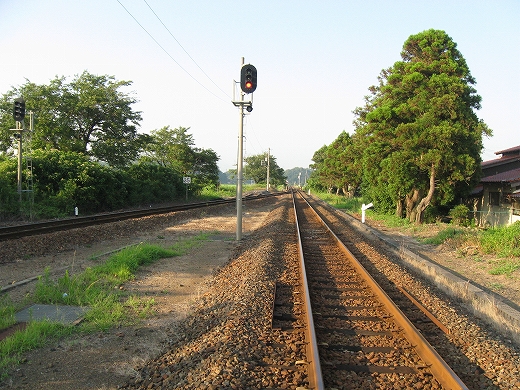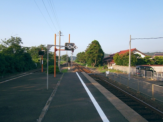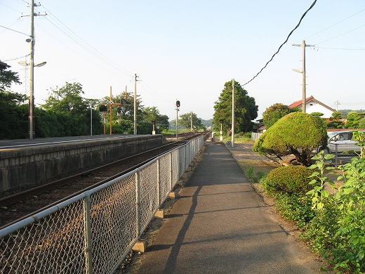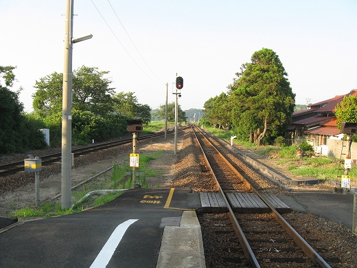 駅はよく見ると行き止まりで、カーブして電気屋からこの町がはじまる。脂汗を垂れ流しながら、夕日と暑気の中、荷物担いで歩くと、明日から深い旅がはじまるような気がした。「最後の最後にこれか…」 しかしそれだけに歩く気力もたやすく絞れる。