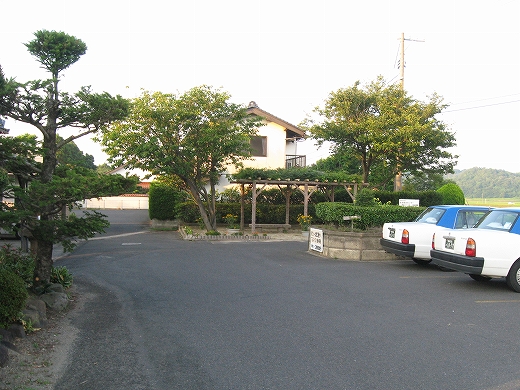 低山に広く囲われた印象で、まさに中国地方、遠くには煙が上がり、島根らしく深い青の石州瓦を頂いた、濃い板の木造舎が、きれいな日本庭園とともにどっしりしている。暑さもだいぶひけていた。