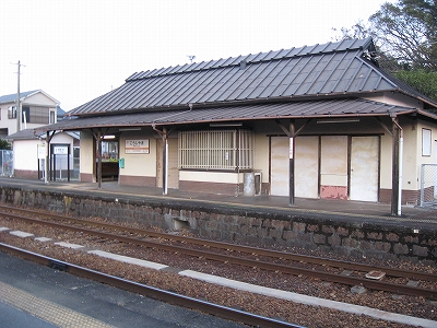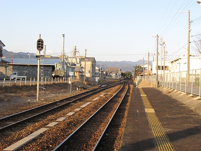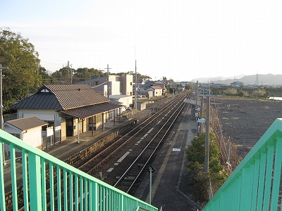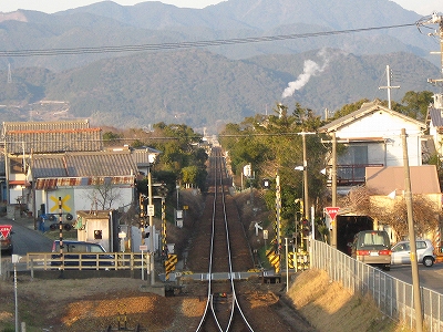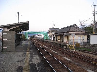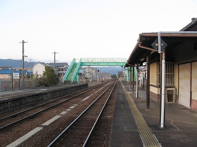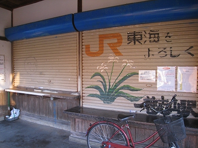 駅舎内には相変わらず「JR東海をよろしく」とペンキの花の絵とともに描いてある。叢越しに国道の走行音を聞きながら、見るものと言えばそれしかなく、私に忘れられない光景となった。「よろしくねぇ…」 あのときはまだよかったのかもしれないな。いまの東海がよろしくなんていうわけもない。この絵を見ると、JRCのスタートは、ローカル線の保持に窮するようなもので、この精一杯描かれたペンキ絵のように、ささやかで美しいものだったかのように思える。もっとも、乱暴で強引だともとらえられるけど。しかし本来はそういう不安さを抱えた門出であったのだろう。この絵にはその当時の感慨が詰まっているようで、いとおしく思われた。
