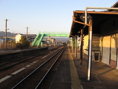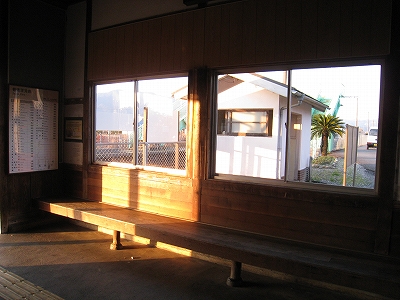 もう夕刻も深く、ばあちゃんの頭みたいな入り母屋の駅舎も明るい暗さだった。しみじみとして、夕光や夕冷えもその木材に油のように染み込んでいく。ここで日暮れ、そして最終が往くまで待つことになる。これまでのどの日よりも西日が強かったので、端の方に来た感触があった。里山が遠巻き、その峰が少し鋭い感じなのは、東紀州に入り、その山間も遠くないことを想わせる。やはり同じ紀南でも和歌山とはまったく違うなと。しかしまだ九鬼の方を見ておらず、あそここそはと期待していた。それにしても、三重もこんな果てのない領地を有していたなんて、奥が深いことだ。