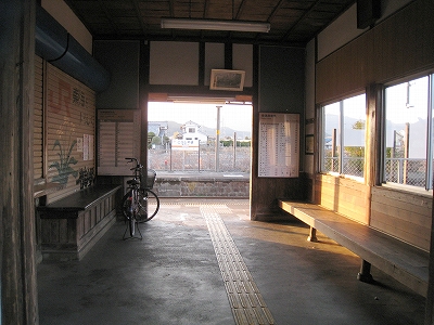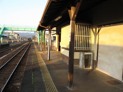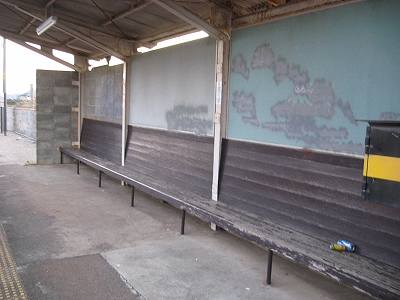 純木造で、きちんと屋根はその会社らしく噴き直されている。ここで寝るのだが、やはり扉はないし、停車場線から丸見えで、やはり入口寄りの死角に陣取ることになった。ときどきホームに出て、向かいのホームを眺めるが、開放式の待合所は荒れていて、少し治安を不安に思う。