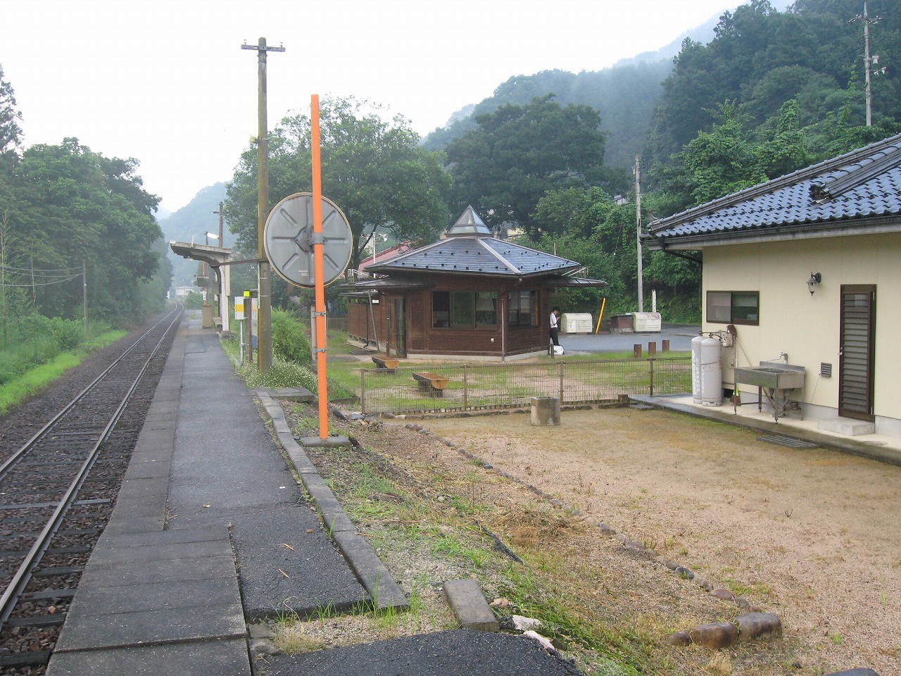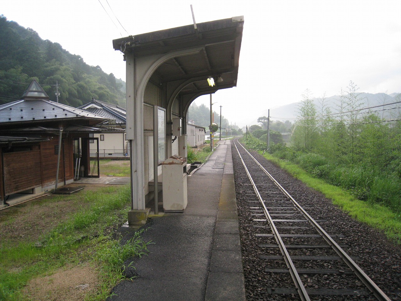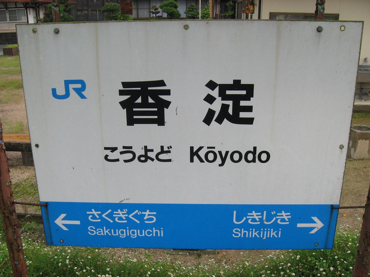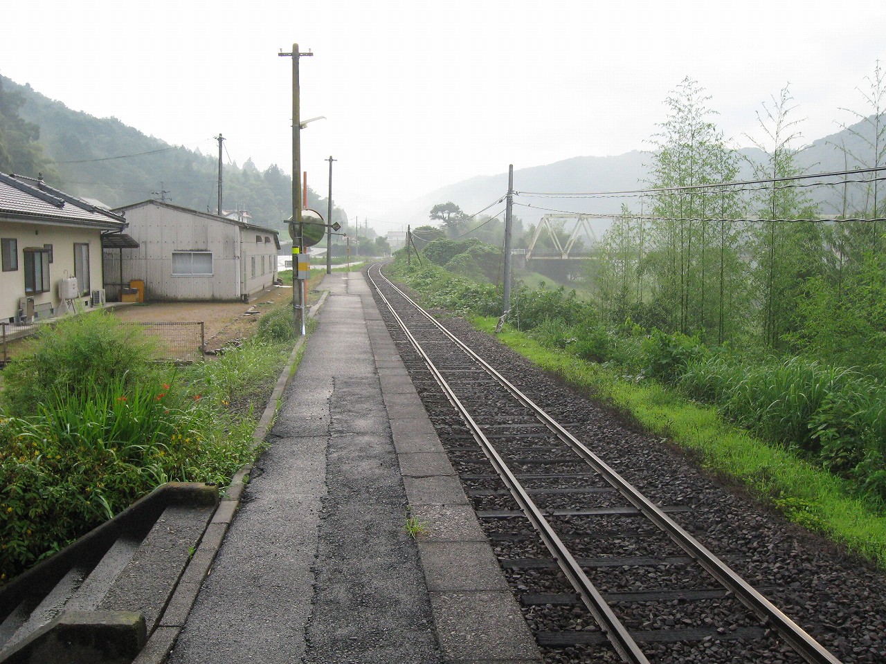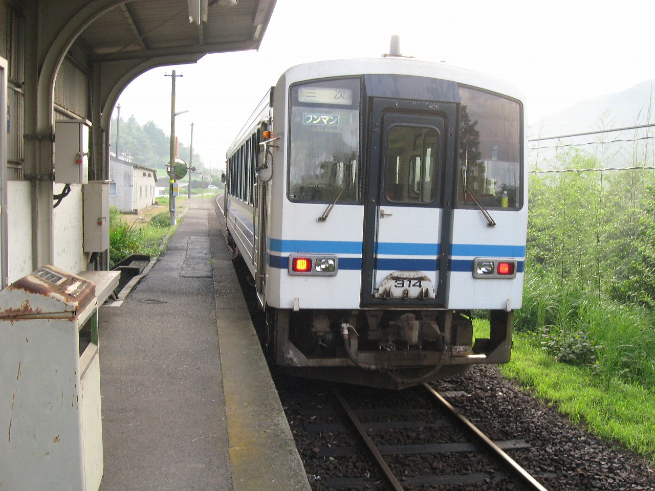 周囲は何軒か家があるが、人も車も通らない、大河の静かな河畔で、どことなく寂しいところだ。三次から来ると、川が惰行し終わったところにあるこの香淀は、もしここに生まれたら、なぜよりによってこんな奥地に生まれついたのだろうと、三次市街へと急ぐ車の中で世を儚んだかもしれない。けれど鉄道乗っているとそんなことを感じさせない。たんたんと平行移動に徹し、川の惰行に沿っていても遠回りに思わせることもなく、名実ともに近代的に市街まで運んでくれる。山を縫いながら運転し、長いトンネルを越えているのとは、何かわけが違う。