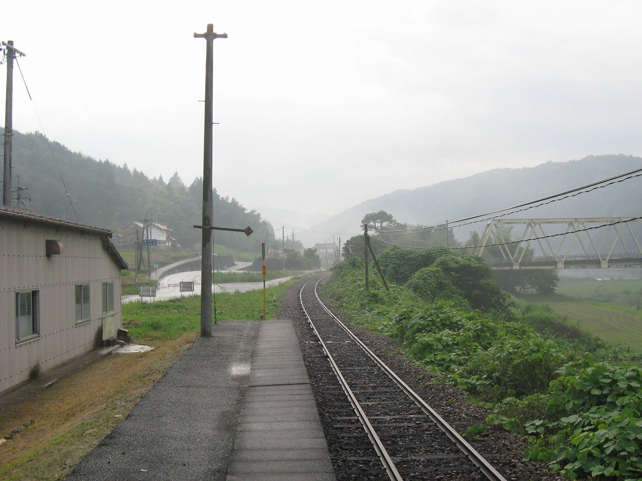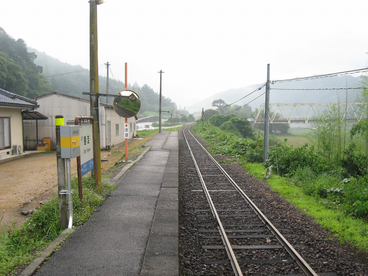 船佐から、所木、信木、式敷と経て、香淀へ。信木以北はやっと未乗区間なので新鮮だった。やっと行きつ戻りつから脱した感じだ。香淀は、思いっきり惰行する江の川の、そのくねった部分を北に越えたところにある。最近の道路はトンネルでショートカットしたその先のようなところだ。さすがにここまでくれば、三江線の内奥とその真髄の区間に差し掛かりはじめたといえるだろう。