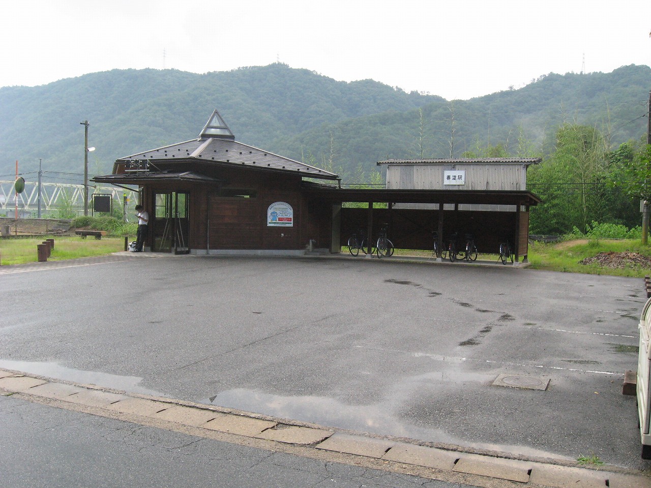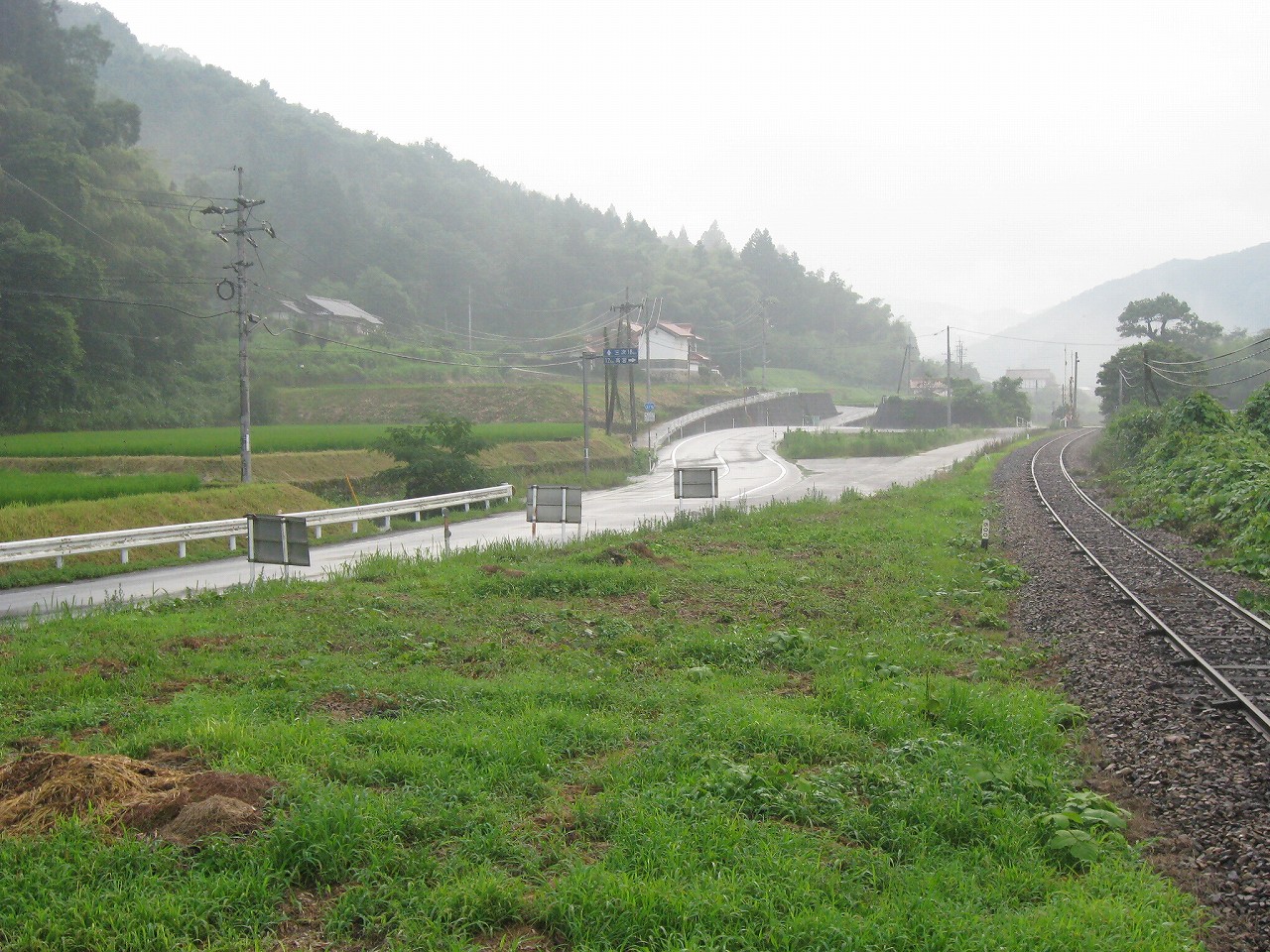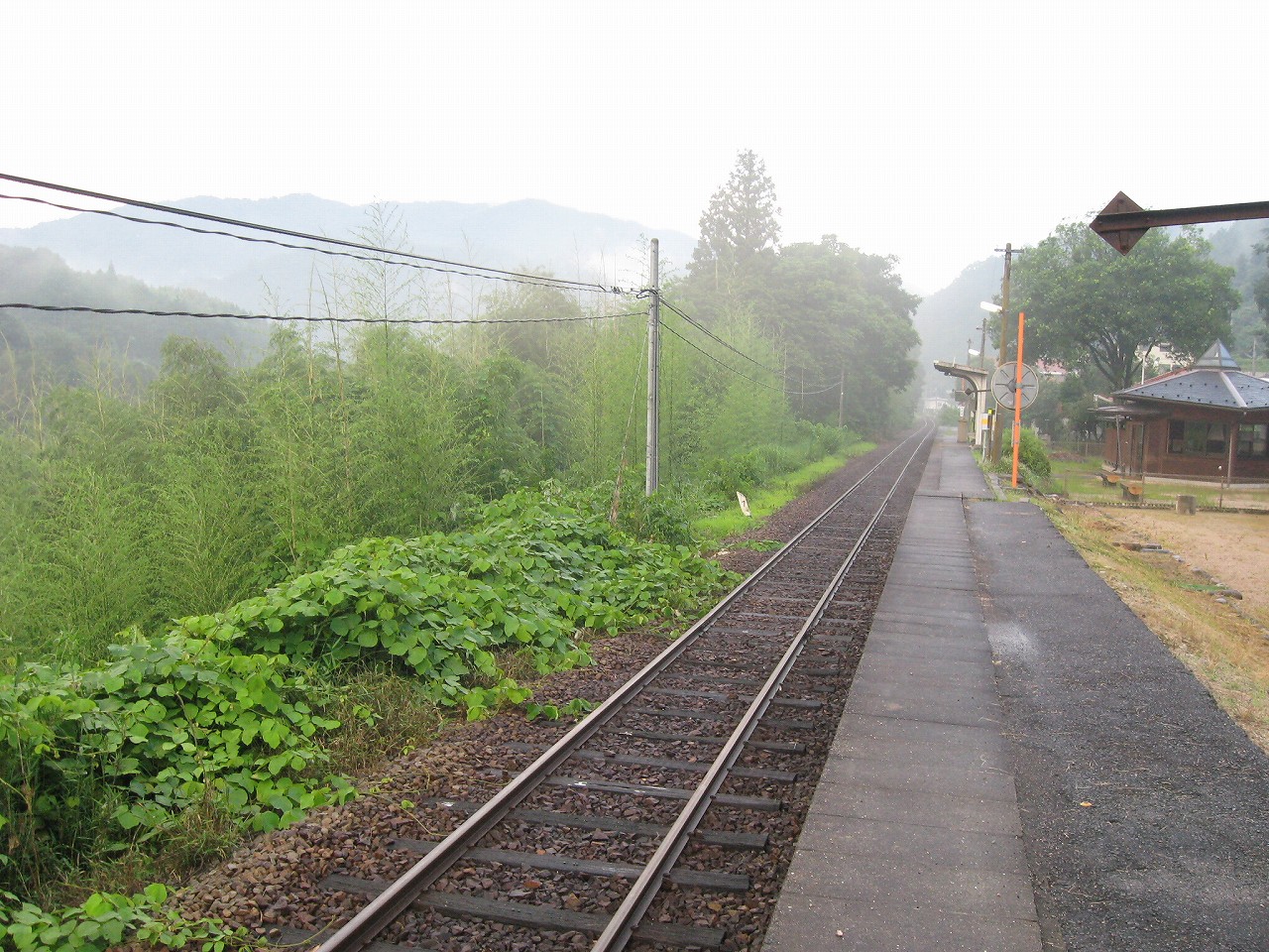 ところで船佐ではただの曇りだったのに、香淀に着いたら霧雨だった。路面もだいぶ濡れている。夏によく予報で言われる、にわか雨に注意というのは、ほんとだったんだなと。けれどそのせいで、まさに香りが漂うような黄金色の靄がかかり、駅名似つかわしい様相となっていた。