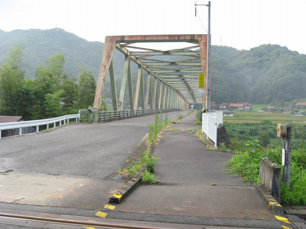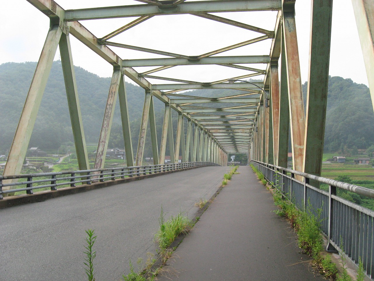 トラス橋の香淀大橋まで来た。車がバンバン走ってそうなタイプの橋だが、その都市めいたさび付いた骨格だけを空に浮き上がらせ、ただただ川の流れの音に渦巻かれながら、静かにたたずんでいた。橋に来たら、橋に来たぞ! という気がしてくる。つまりはそれしかないのだ。しかし橋は少なく、次の三次寄りの橋は川の惰行を経た先、つまり式敷にしかない。