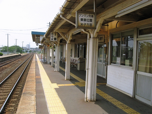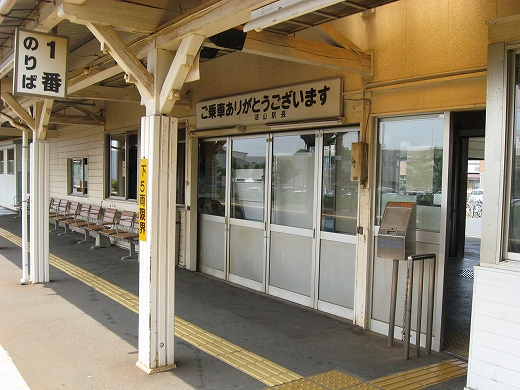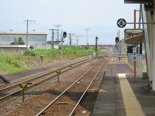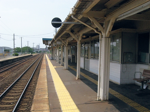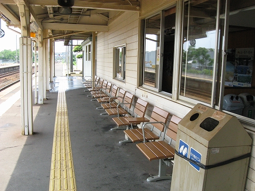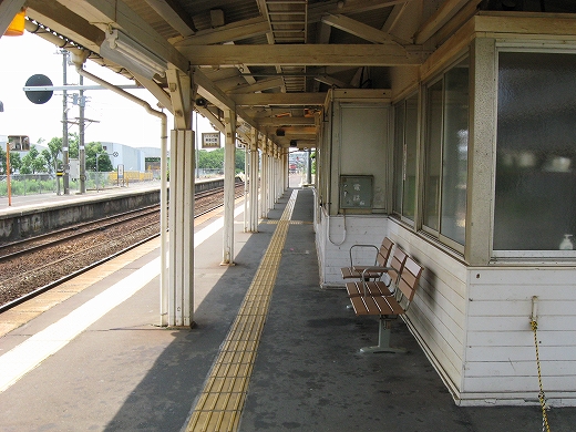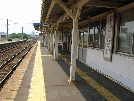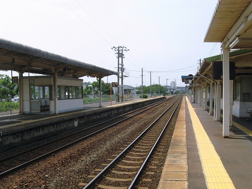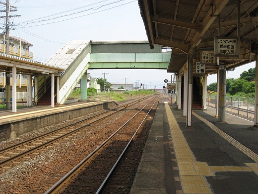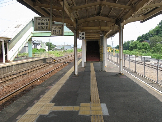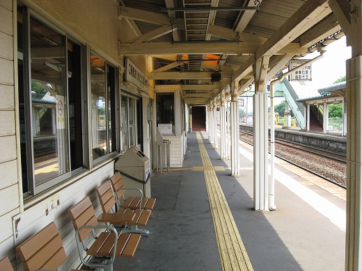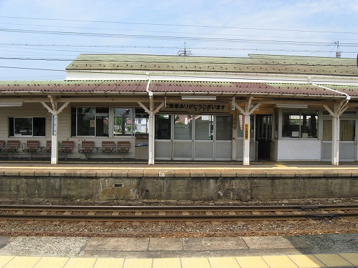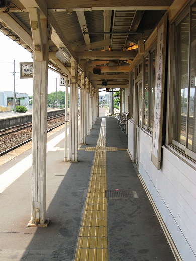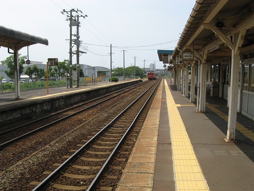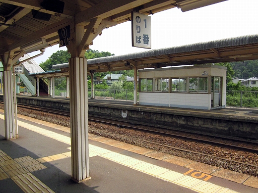 構内は赤茶けて、陽炎がゆらめいている。県都の隣の駅であるが…白昼とあって客が去ると自分以外誰一人としていなくなる。まさに砂地の平野にいる感じだ。はやく山陰道を奥深く詰めたいなと思うが、初めて山陰の心央域に入って出遭った駅とあって、私はたった独り、興奮に包まれていた。