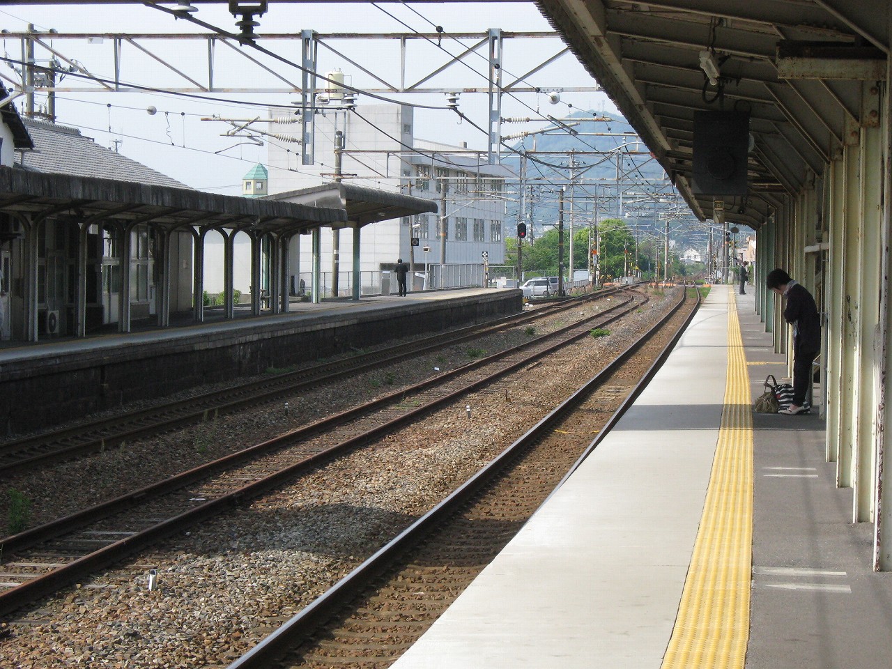 午前の忙しい時間をやり過ごすため、いったん岩国を越し、玖波へ向かった。通勤列車として目される最後のスジで到着したから、玖波には早くも午前の気だるい空気が漂っている。冷え込んだ初夏の空気は温まりはじめたばかりで、三線の構内や三角屋根の木造舎は明るいうちにまだ寝ぼけているような感じだった。