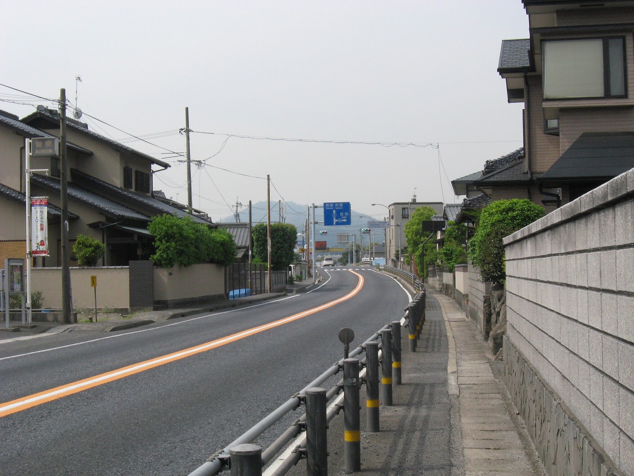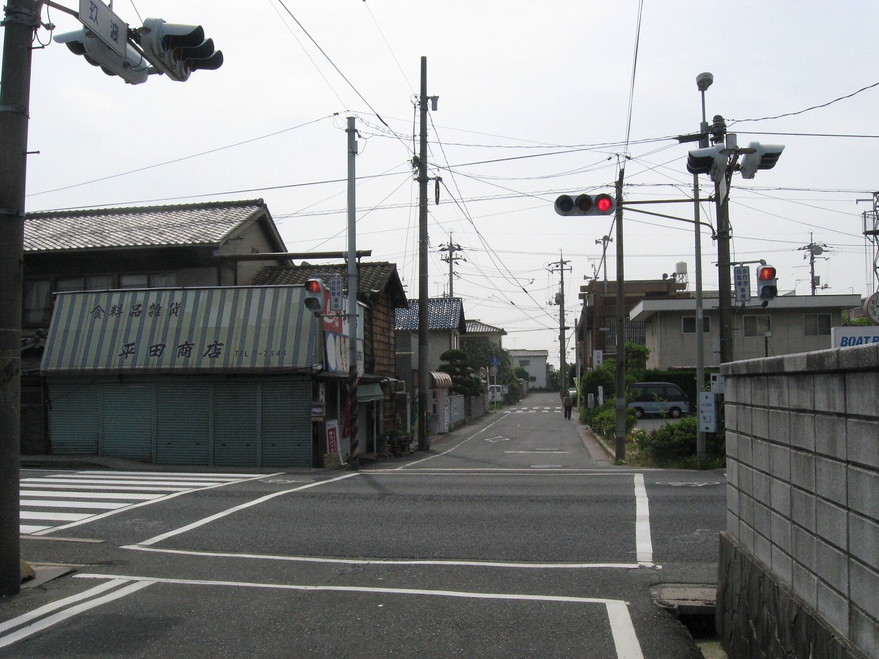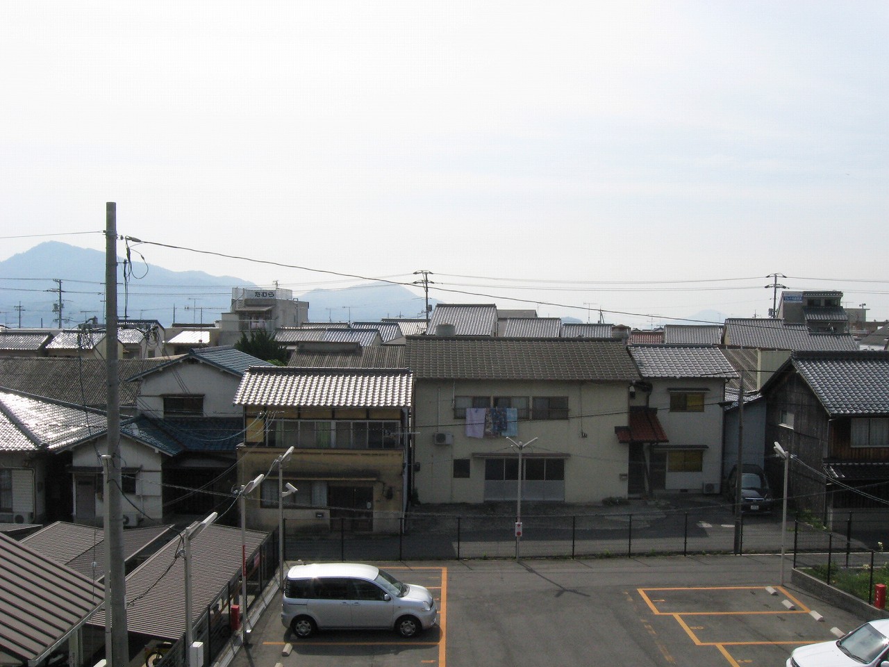 薄雲のせいで空と海の区別がつかないが、民家の途切れているフチが、自由曲線で向こうまでつながっている。それで海が近いとわかった。