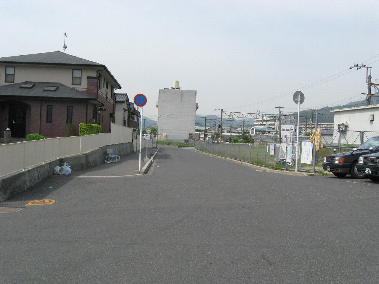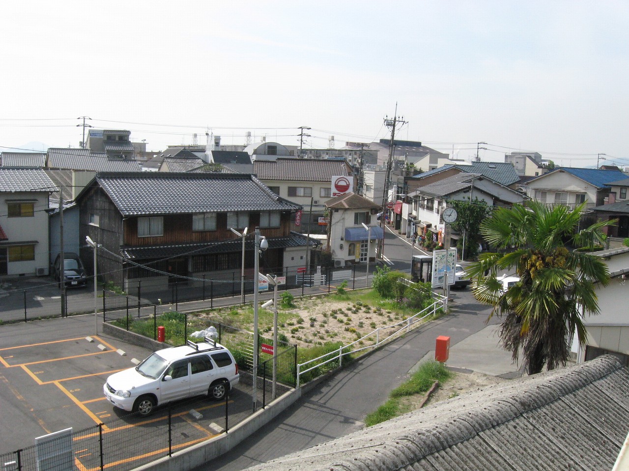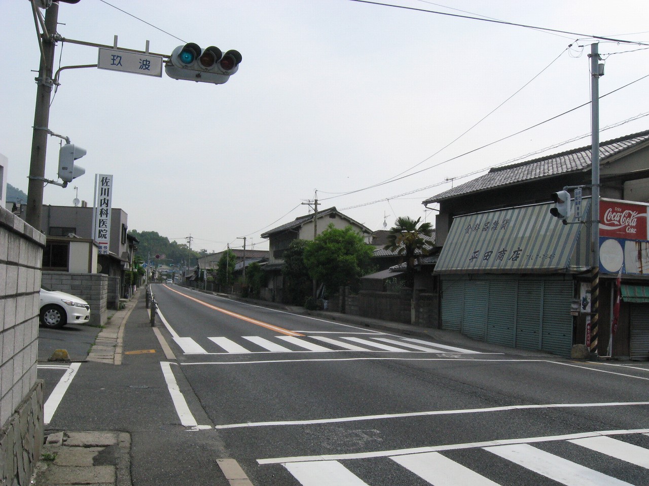 薄雲のせいで空と海の区別がつかないが、民家の途切れているフチが、自由曲線で向こうまでつながっている。それで海が近いとわかった。
