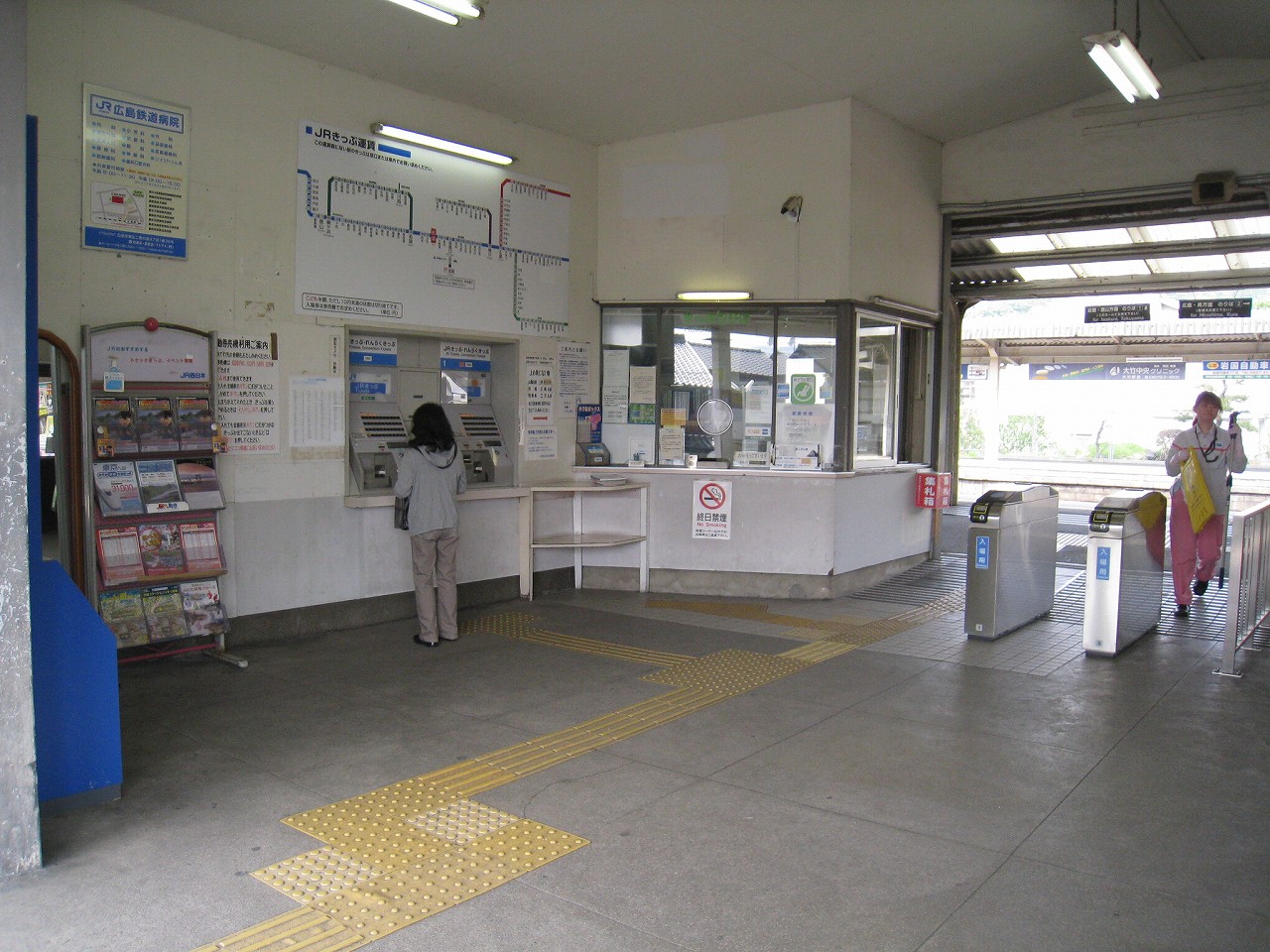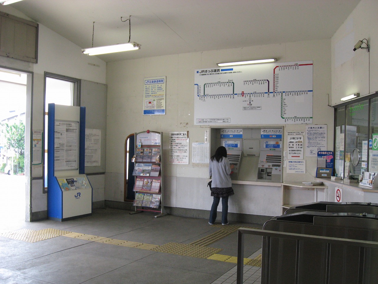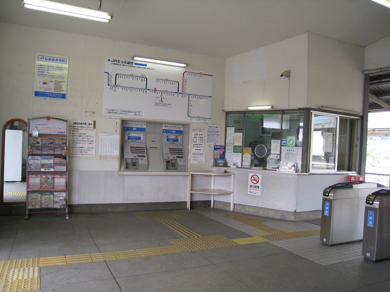降りたばかりの時はまだ朝日らしい感じで緊張感が漂ってたけど、しだいにそれも収まってきた。通勤時間帯が過ぎ去った後でも、駅を利用しに来る人は、少しして二人、少しして三人、そうして途切れることはなく、駅は古いけど、やはり広島都市圏なんだなぁと。