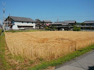 道を歩いて。色づいた小麦畑。
