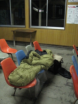 駅の敷地内にいるから安心とは感じなかった。施設が押しなべて古いのだ。何十年も吸い続けた時代が夜になって発散されている。外は涼しいが、さすが北國造りで中は変に暑い。これが悪夢の引き金となる。椅子は一人掛けだし、快適な要素はさっき買った冷たい飲み物くらいだった。