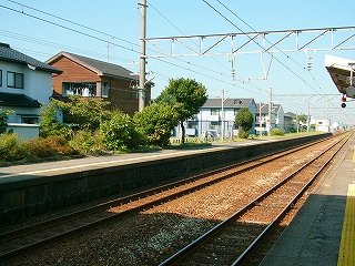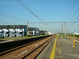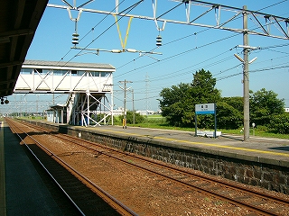 富山駅を前にして、有名で、固有の地名だったから、独立した感じや中くらいの駅を望んでいたが、古い駅舎のあるきれいなまでの典型の駅で、どこにでもありそうなため、馴染みやすいところだった。改札口あたりに白い壁と透明の風除けが見えて、この先の市振や親不知を想った。もう高岡圏を出かかった感じが強かった。平野の先は、海が期待できるような、富山東部を彷彿とする風景だった。