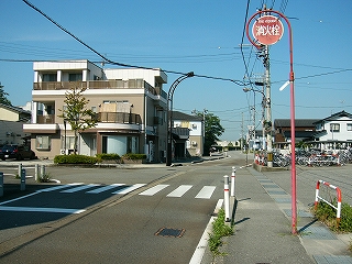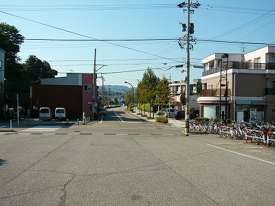 駅前の交差点。家や街灯や大学など、洒落たものも少しばかり見受けられた。