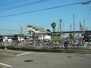 呉羽駅の駐輪所。トイレは一棟で改札内外両方から利用できるようになっていた。