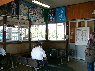改札に行ったが、小さい駅舎なのに窓口がやけにせわしなくて、しかも待合室では板壁に囲まれながら汗垂らして多く客が待っていた。特急終点のある都市駅の一つ前というのは、何かしら胸が騒ぐ。都市の気概の縁辺流。しかもそれがこんな昔からの木造駅だと、時代帰りしたかのようだった。