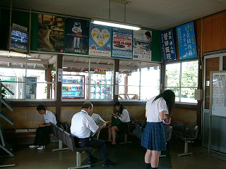 駅舎の中に、一人50代の女の人が入って来る。首筋にだらだら汗流して苦しそうだが、駅舎に入る瞬間、何かを期待しているような喜びの表情を浮かべた。しかし悲しいかな、この駅には冷房などない。やっぱりここも暑いわ、とさっと敵意の顔になって、その人は座り、かろうじてそれだけが身回り品で優雅である扇子でばったばた仰ぎはじめた。見ていて気の毒なほど汗を流していて、更年期の発汗と重なったかのようだった。周りの客と比べると、かなり違う。
