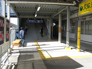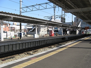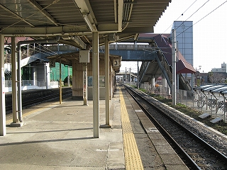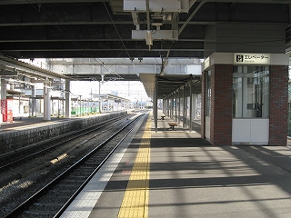 階段を降りたところから見た1・3番線ホーム。2番線は南側に切り欠きホームとしてある。