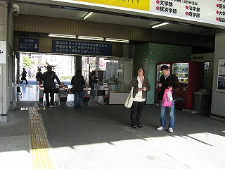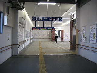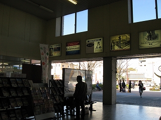 おみやげ売り場(Kiosk)から見た改札。上の広告は全部JR九州のものだった。