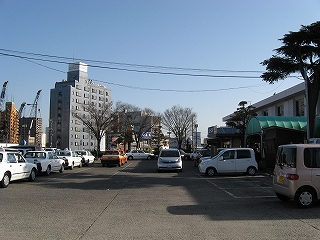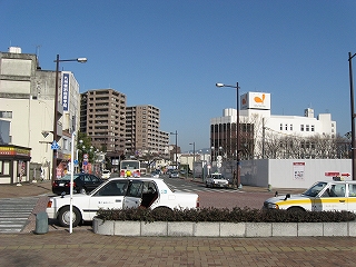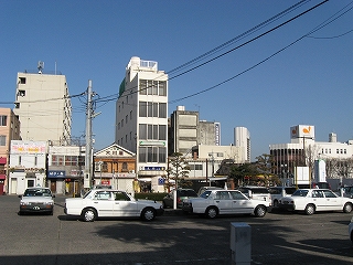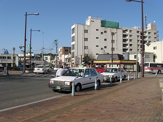駅を出て左側の様子。もっぱらタクシー乗り場。 市街中心は離れているらしいから、よいかもしれない。