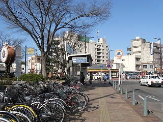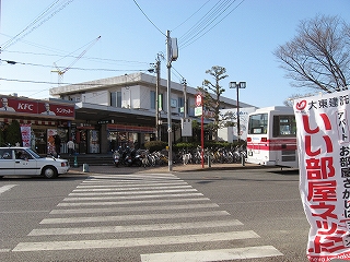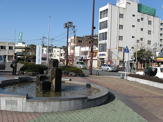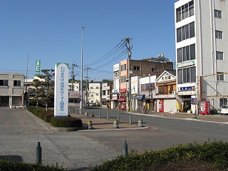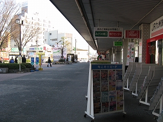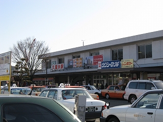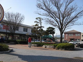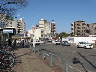 駅前右手の風景。住んでヨカ、との大書きの不動産屋が九州にほかならなかった。