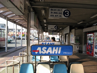 3番のりば前。西鉄久留米、文化センター、野中、競輪場口、高良内、商学部、御井町、矢取。2番はさっきの羽犬塚、1番は日田となっている。