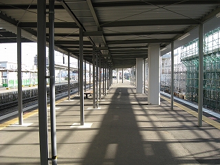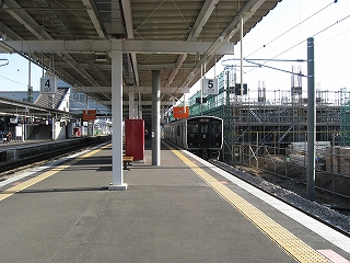 4番線から見た隣の1・3番のりば。 基礎は従来からのものを流用。こうして駅が新しくなっても 古きものは残っていくのだった。こちらの4・5番線ホームは初めからなかったので 新造された。