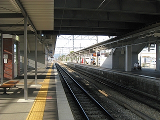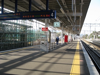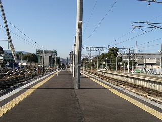 隣の4・5番線ホーム。新しい駅にもかかわらず、 こっちに向けて鳥栖・博多方面との案内表示が出されていて丁寧だった。 奥では新幹線の高架工事。