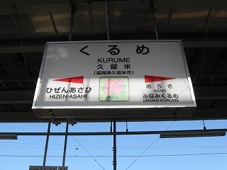 鳥栖からわずか8分で、久留米というまた別の街に着く。筑紫川を渡ってすぐのところとなっている。鹿児島本線はこうしてしばらく、断続的に都市を連ねることになる。久留米は全国的に有名で、久留米絣が思い浮かぶ。