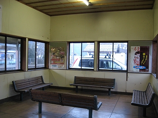 駅舎の中に入ると、がらんとしていて、4つの長椅子がそれぞれ内に向けて置かれてあった。たいていは顔を合わせぬよう2列にしたりするのだが、そんな必要はここではないようだ。無理に一人掛けに変えていないだけでも、どこか落ち着くのだから、なんだか心惹かれた一方、別のところに来た感じでもあった。ここにいても吐息は完全に白濁するほどだったが、何か温かい飲み物でも持ちながら、こんなところの椅子に座って、列車を待ってみたくもなるようだった。旧来の木造駅舎と違って割と広く、そこもよさそうなところだ。時計も掛けられ、列車時刻表も統一された様式でなさそうで、駅が独立しているようだった。