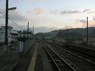 次の駅だ、ぼうっとしていてはいけない、高知に早朝に着いて列車に乗り、初めて下車するとなると緊張して、頭がぐらぐらした。だが、快適な走行音とともに、日下、日下です、との放送が、有無を言わさず流れ、列車は駅に着いてしまった。立ちあがると、しばらく座っていたせてもあって、なんだか足が不安定だ。どうにかドアまで行く。背後で、この人はここのもんではないな、という感じで見られている気がしている。列車のそのどこか生ぬるい空間から這い出すように、外へ出た。すると、目を見開くほどに寒い。目玉に寒さがしみこむようなので、直ぐに眉根を寄せて目を細めた。これは高知駅前とは雲泥の差だった。放射冷却極大の時間に加えて、あたりの風景からしてもここは山手であるらしかった。枕木を見ると霜が降っていて、あたりの畑も霜柱で薄っすら白んでいる。そうとう寒いと言ってもよい。しかしここが高知に来て、初めて交感する駅だった。霜の寒さの中、その寒さによってスイッチの押された交流電流が走り出す。とにかく、びゃんびゃん鳴る構内踏切を前にして、佇んだ。駅舎のあるホームを少し見上げると、駅舎の軒下いっぱいに高校生が待っていた。