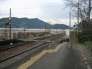 下りホームの様子。木々はすっかり枯れていて少しさびしげな雰囲気。