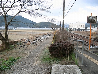 駅舎を左にして。駐輪所がある。