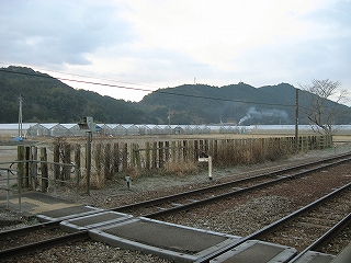 駅の裏側には冷たいビニールハウスが広がっている。