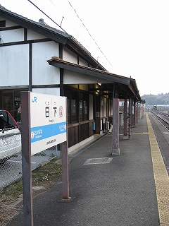 駅舎は一見して擬古風で、白壁と屋根瓦を使い、出入口だけは屋根を高く上げて、日下駅、と掲げてある。各窓は大きく、サッシが入っていて、やはりそんな昔のものではないらしいのだけど、白壁は緑がかっていたりして、この建物も結構経つらしい。町が新しく建てたような、数多くある擬古様式の駅舎も、こんなふうに見る角度によってはずっと前からあるかのように見える駅舎になっていくのだろう。派手な色を使った看板などが駅舎に添えられてあるのも、村の人に使われている証のようで、できたばかりのときにある、白壁の威厳はもうない。そんな建築資材の懐柔されてあるのを期待していることもあったりする。