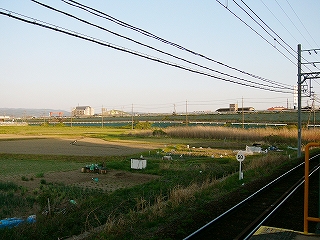 ホームから伊賀方の畑の風景。