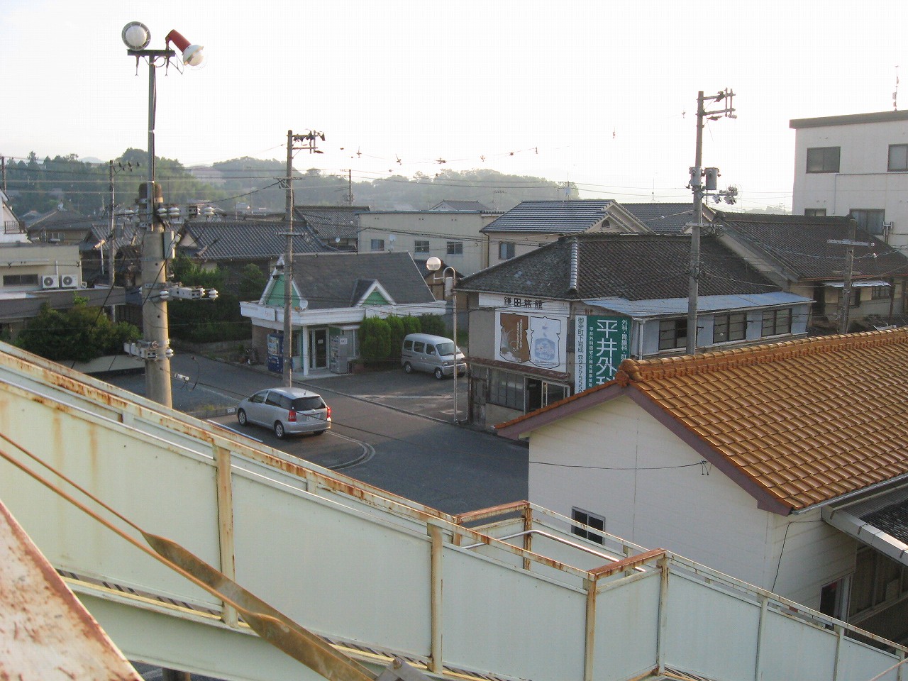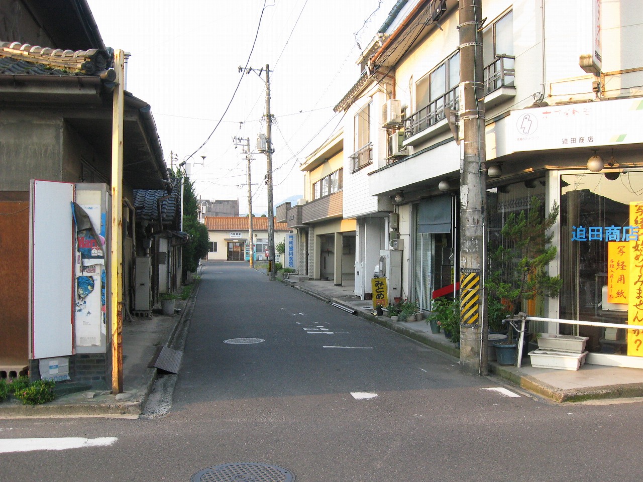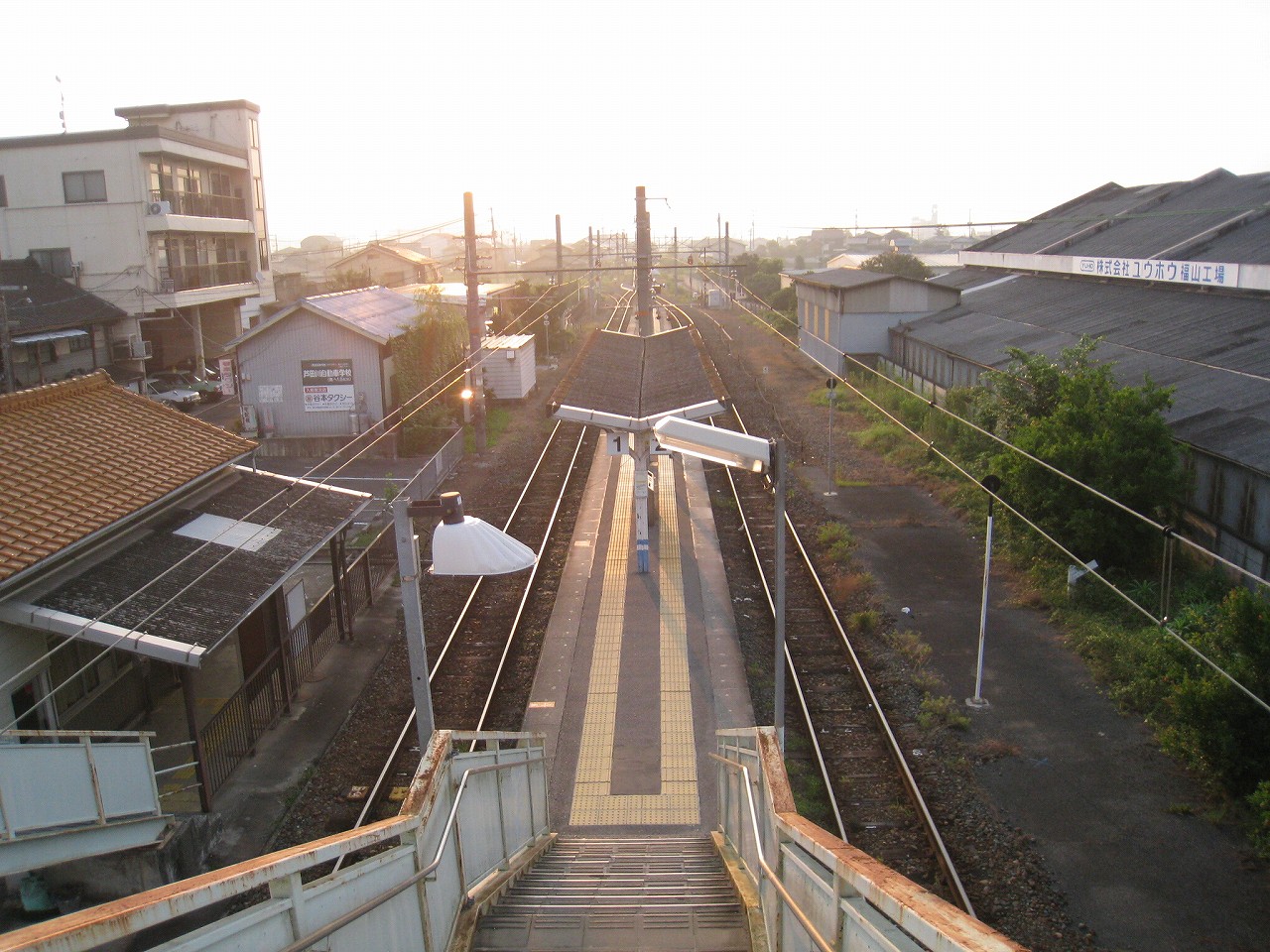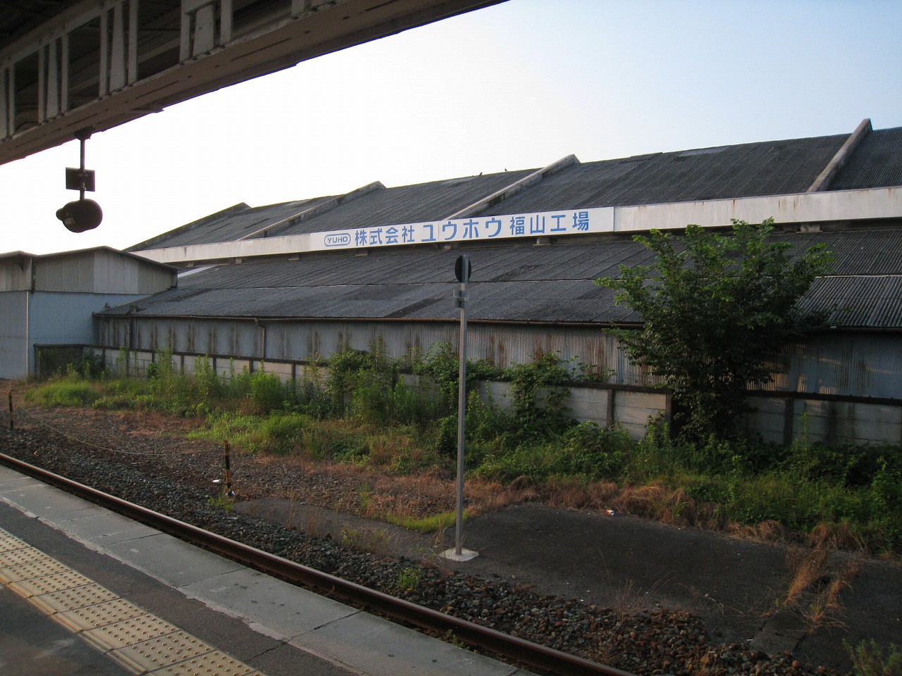 にしてもこの内陸平野は地図で見るより広々として偉大だ。きっと古代の人も、穀倉地として有望視していただろう。万能倉、なんて聞くと、そんなことを思い浮かべる。裏手には糸へん産業の工場があった。福山にとってもこの地は重要なのだろう。しかし駅はまたあの石州瓦を戴いた、木造モルタル塗りのかわいらしい建築である。見下ろす駅前には誰もおらず、ただかつての駅前旅館が、かつての町の相貌を物語っている。