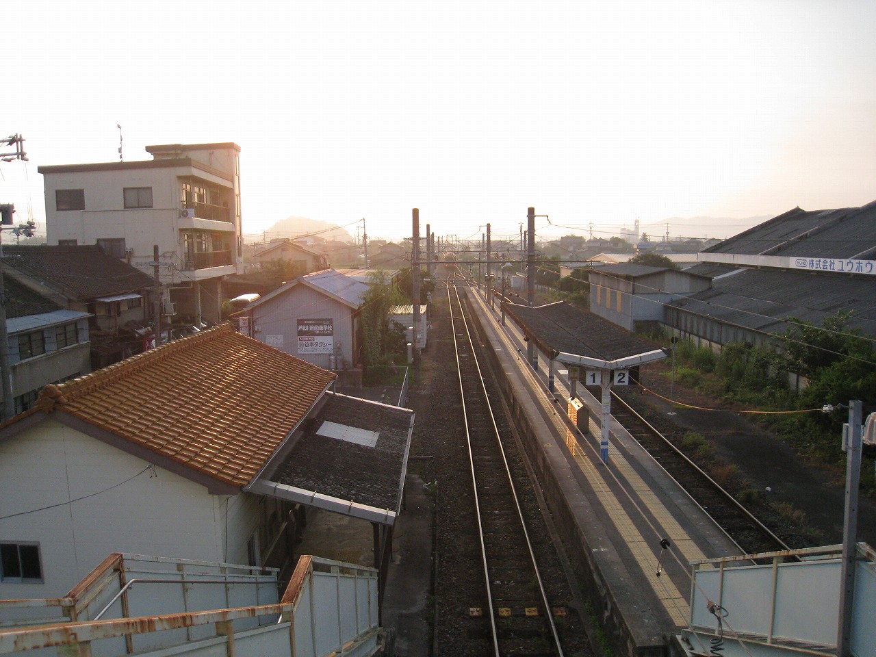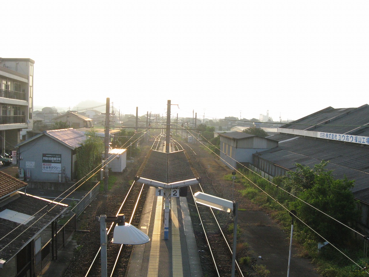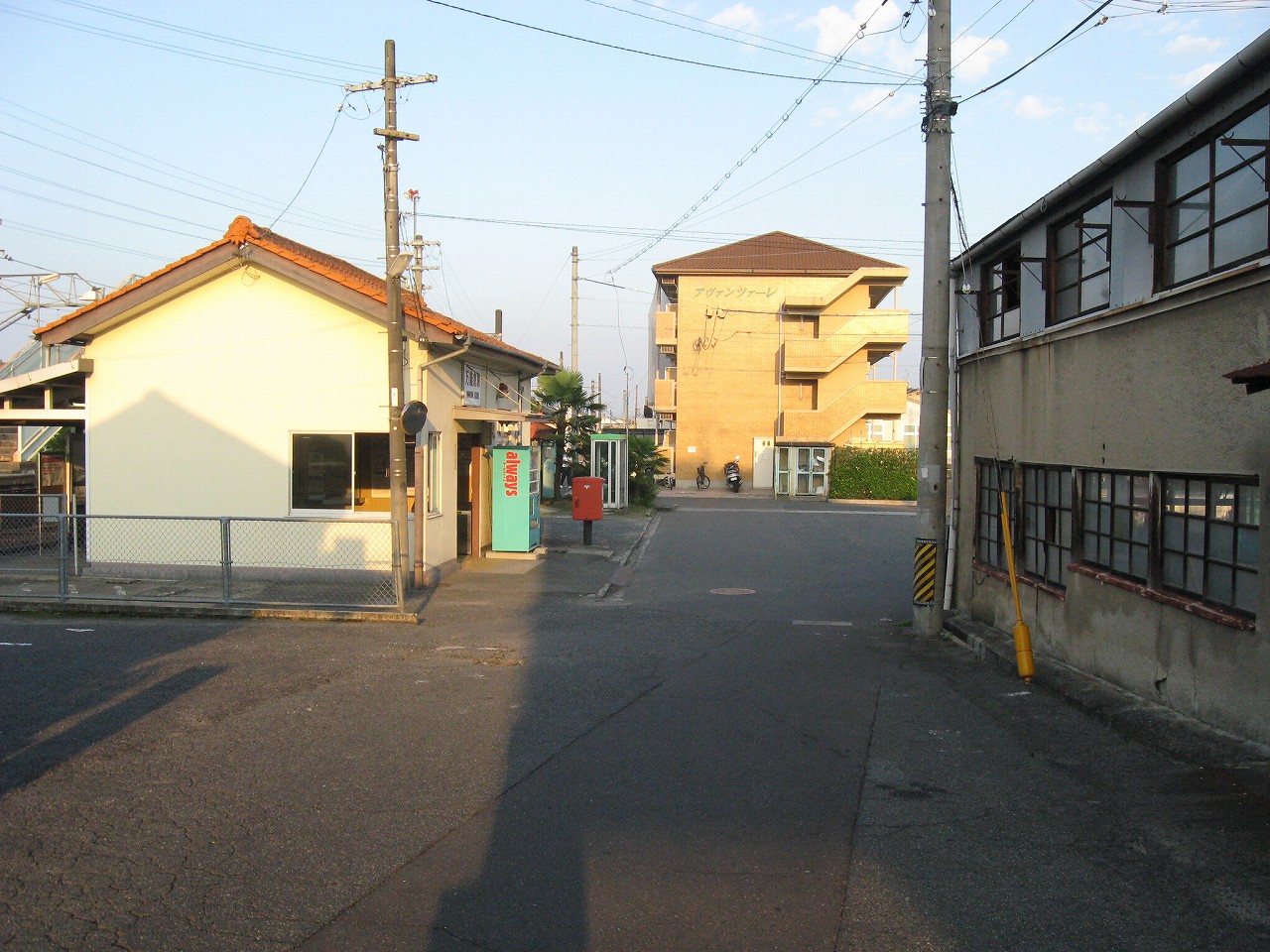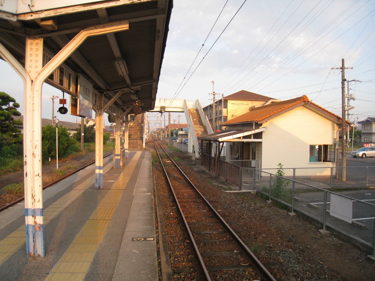 にしてもこの内陸平野は地図で見るより広々として偉大だ。きっと古代の人も、穀倉地として有望視していただろう。万能倉、なんて聞くと、そんなことを思い浮かべる。裏手には糸へん産業の工場があった。福山にとってもこの地は重要なのだろう。しかし駅はまたあの石州瓦を戴いた、木造モルタル塗りのかわいらしい建築である。見下ろす駅前には誰もおらず、ただかつての駅前旅館が、かつての町の相貌を物語っている。
