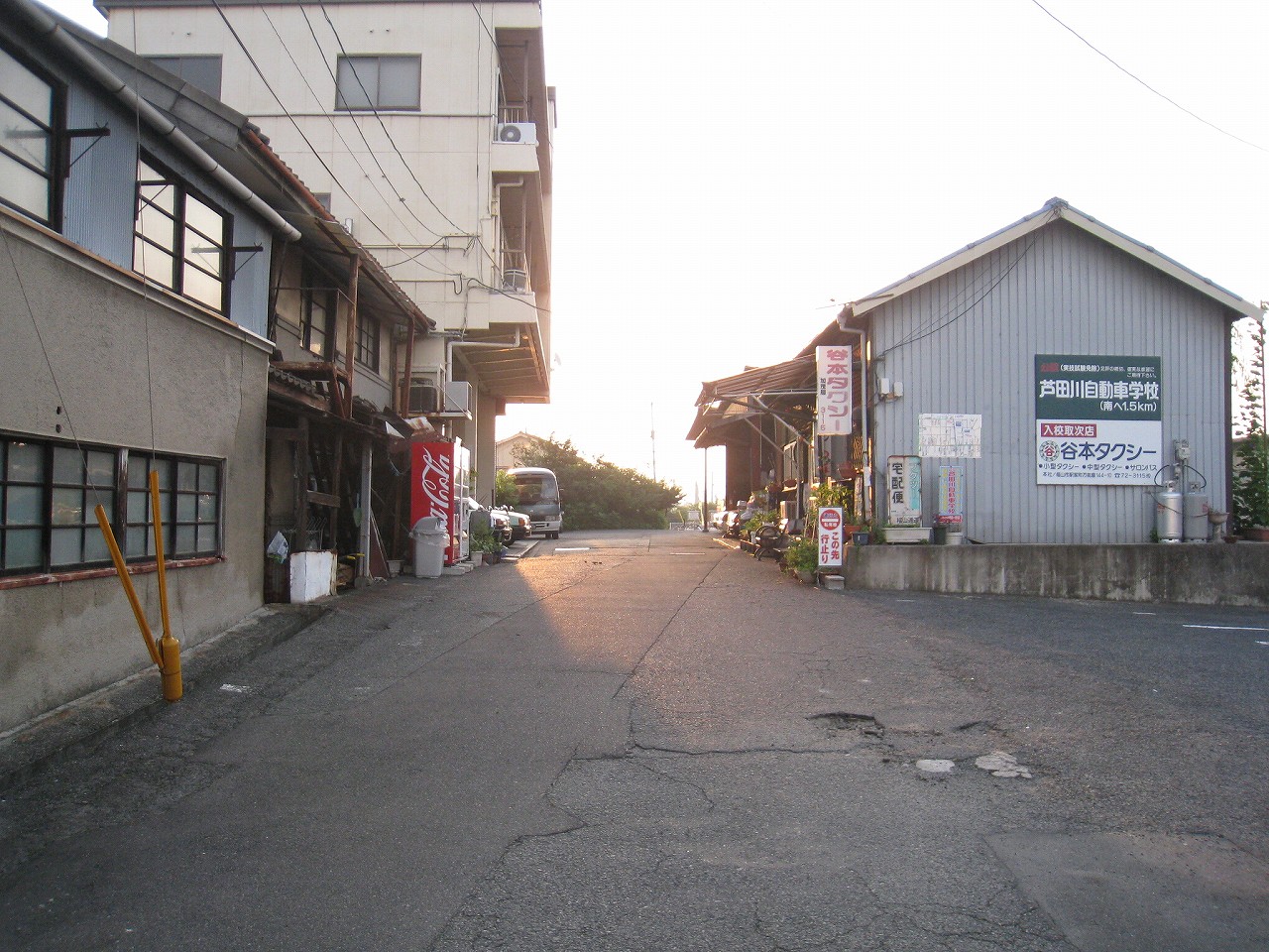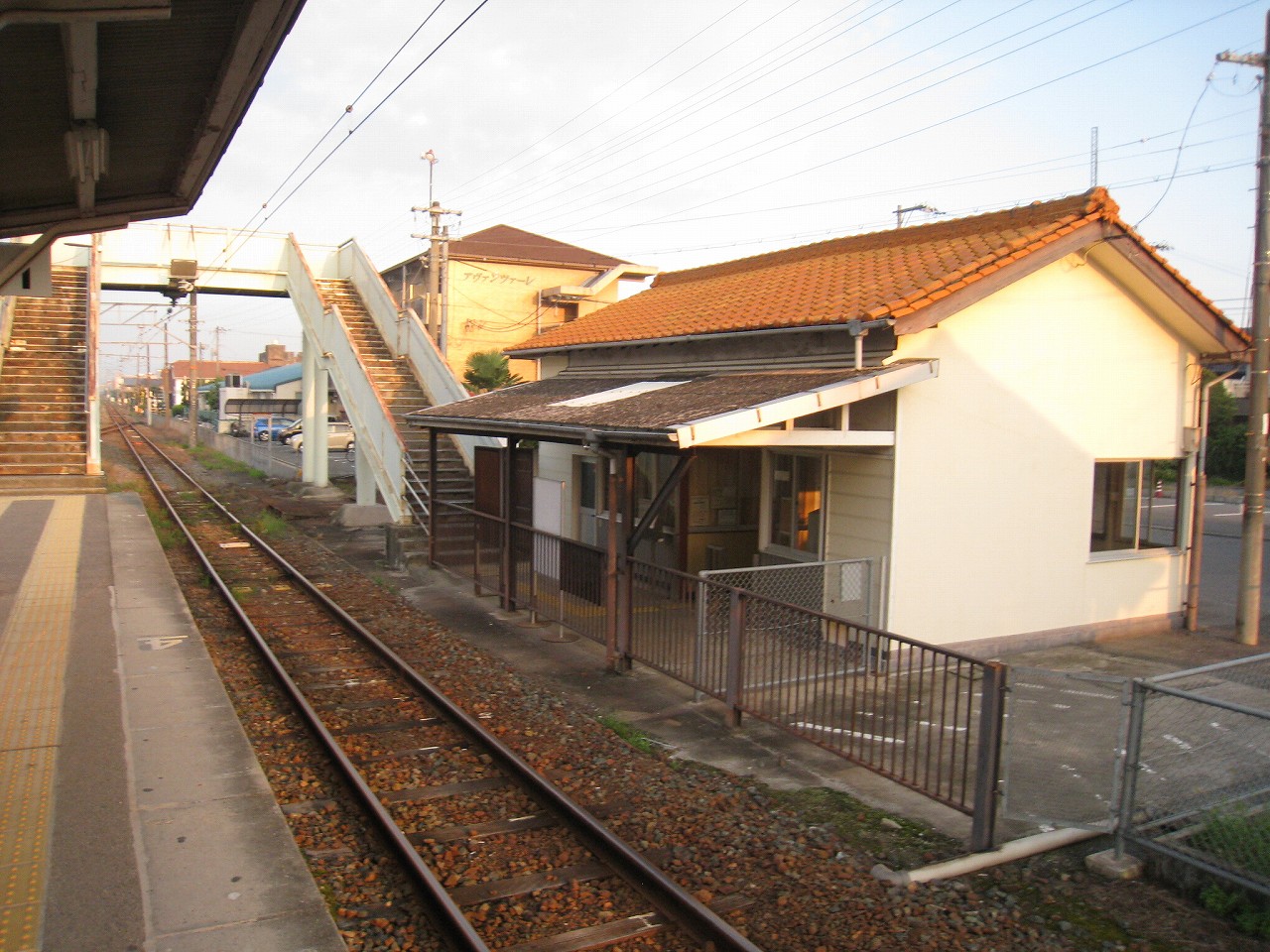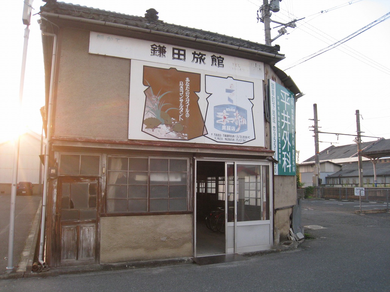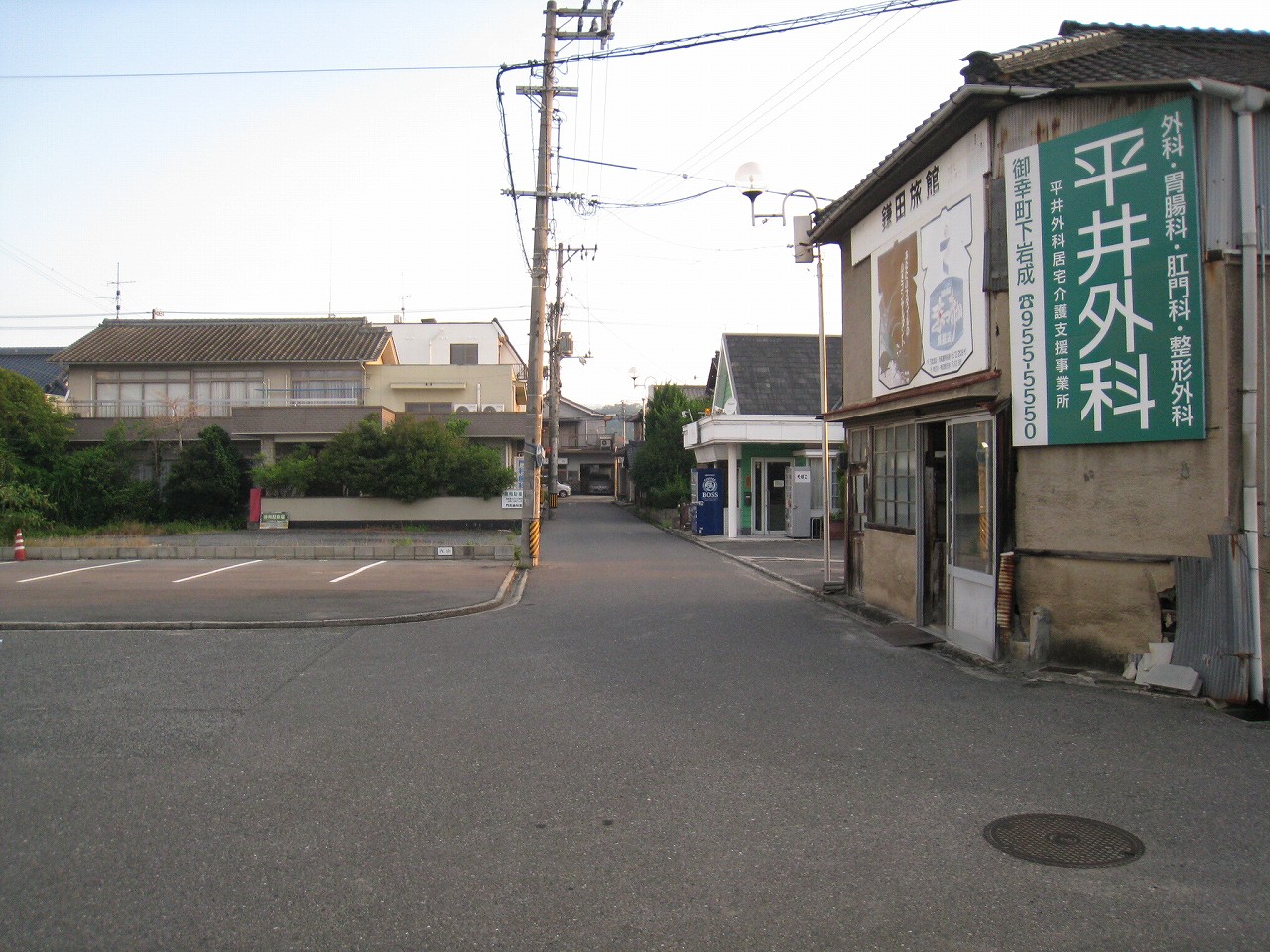 にしてもこの内陸平野は地図で見るより広々として偉大だ。きっと古代の人も、穀倉地として有望視していただろう。万能倉、なんて聞くと、そんなことを思い浮かべる。裏手には糸へん産業の工場があった。福山にとってもこの地は重要なのだろう。しかし駅はまたあの石州瓦を戴いた、木造モルタル塗りのかわいらしい建築である。見下ろす駅前には誰もおらず、ただかつての駅前旅館が、かつての町の相貌を物語っている。
