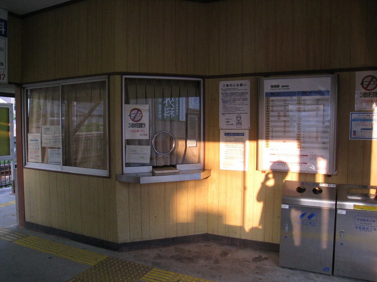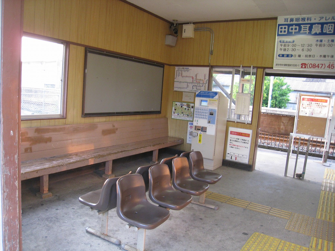ここには駅家駅みたいなあの無言の賑々しさみたいなのはなく、いたってオーソドックスな木造舎内だった。いずれにせよ、旧駅家町の中心なので、最後まで近接して駅舎が残ったと思われる。